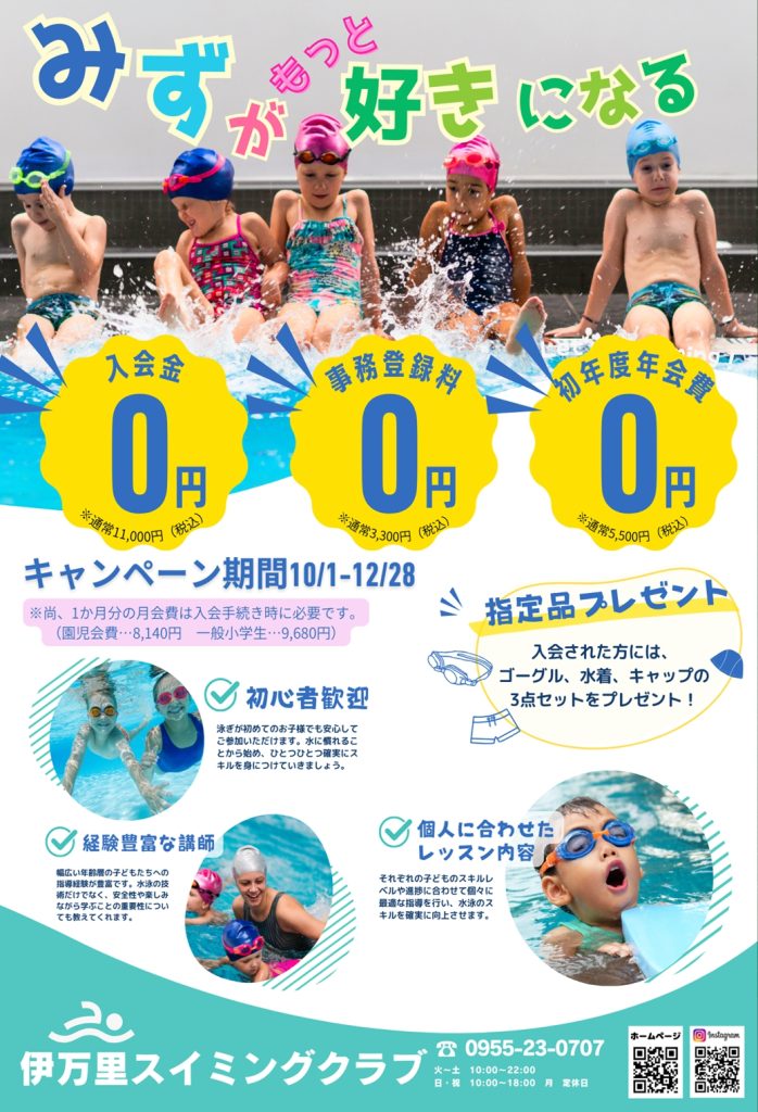 ただ今伊万里スイミングクラブでは、0円キャンペーンを実施しております。