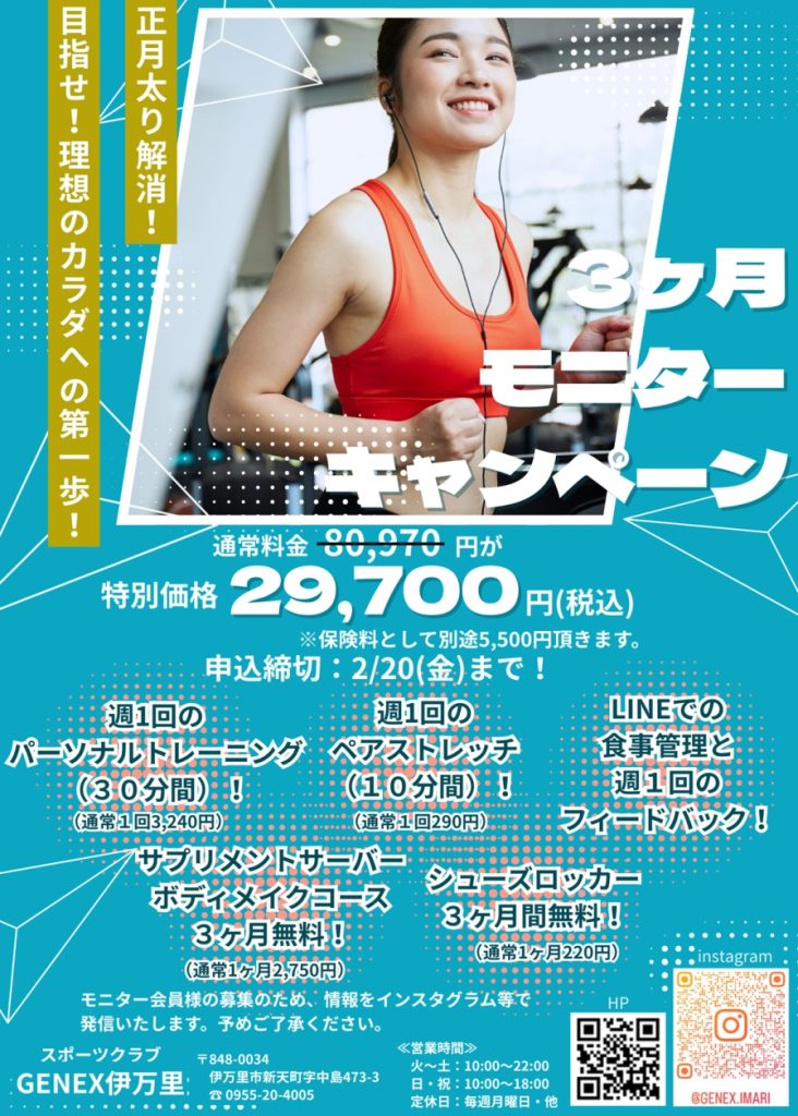 GENEX伊万里にて、3ヶ月間のモニターキャンペーンを行っております。